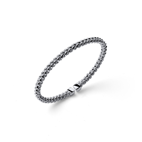 Il Bracciale Bangle Chicco in argento è un gioiello dal design moderno e deciso, pensato per chi ama accessori essenziali ma ricchi di personalità. Realizzato in argento luminoso e rifinito con cura artigianale, questo bangle si distingue per il suo motivo a catena reinterpretato in una struttura rigida ed elegante, capace di valorizzare il polso con stile contemporaneo.