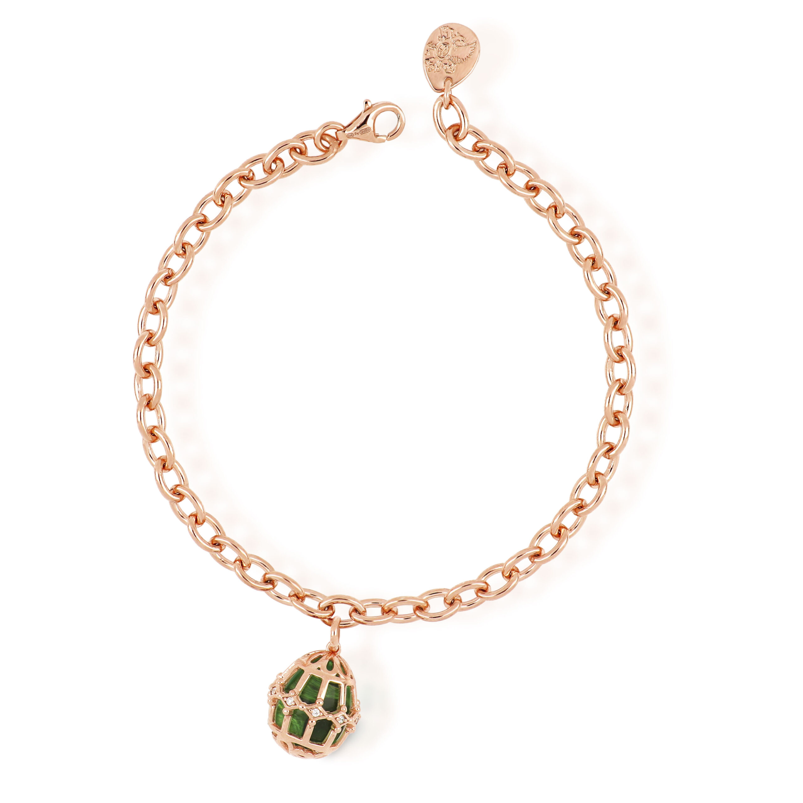 Tsar Collection – Bracciale in argento rosa con ovetto verde